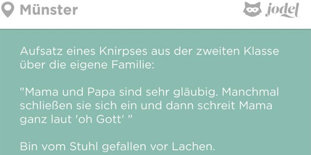 Im Internet sorgt derzeit ein Volksschul-Aufsatz aus Münster für Lacher: "Aufsatz eines Knirpses aus der zweiten Klasse über die eigene Familie. Bin vom Stuhl gefallen vor Lachen", kommentierte der bzw. die Lehrer/in eines Zweitklässlers auf der Social-Media-App "Jodel".