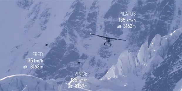 Zwei Basejumper aus Frankreich sind von der 4.158 Meter hohen Jungfrau im Berner Oberland (Schweiz) in die Tiefe gesprungen und direkt in einen „Pilatus Porter“ hinein. Es war der zweite Versuch, der beiden Extremsportlern gelungen ist, beim ersten wurde der Eingang des Fliegers verpasst.