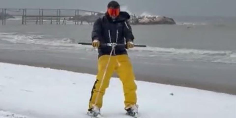 Er lässt sich nicht die Urlaubs-Laune von dem frostigen Wintereinbruch in Europa nehmen! Während die meisten gerade Zuflucht im Warmen suchen, verwandelt er den Rimini-Strand in eine Skipiste und trotzt der eisigen Kälte.