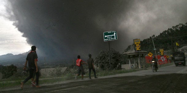 Von Surabaya bis Yogyakarta bot sich ein apokalyptisches Bild: Häuser, Autos, Felder und Vieh lagen unter einer dicken grauen Ascheschicht. Der Himmel war grau verhangen. Die Sicht betrug nur wenige Meter. Menschen mit Atemschutzmasken schaufelten die Asche kübelweise von Balkonen. Auf dem Flughafen von Yogyakarta standen Maschinen mit dickem Staubpelz.