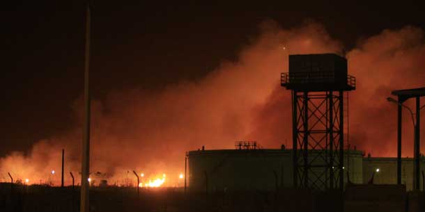 Die Feuerwehr versuchte, die das Flammenmeer zu löschen. Sicherheitskräfte sperrten unterdessen alle Zufahrtsstraßen zum Unglücksort ab.