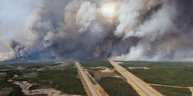Durch stark drehende Winde breitete sich das Feuer in Richtung der Ölsand-Anlagen aus.