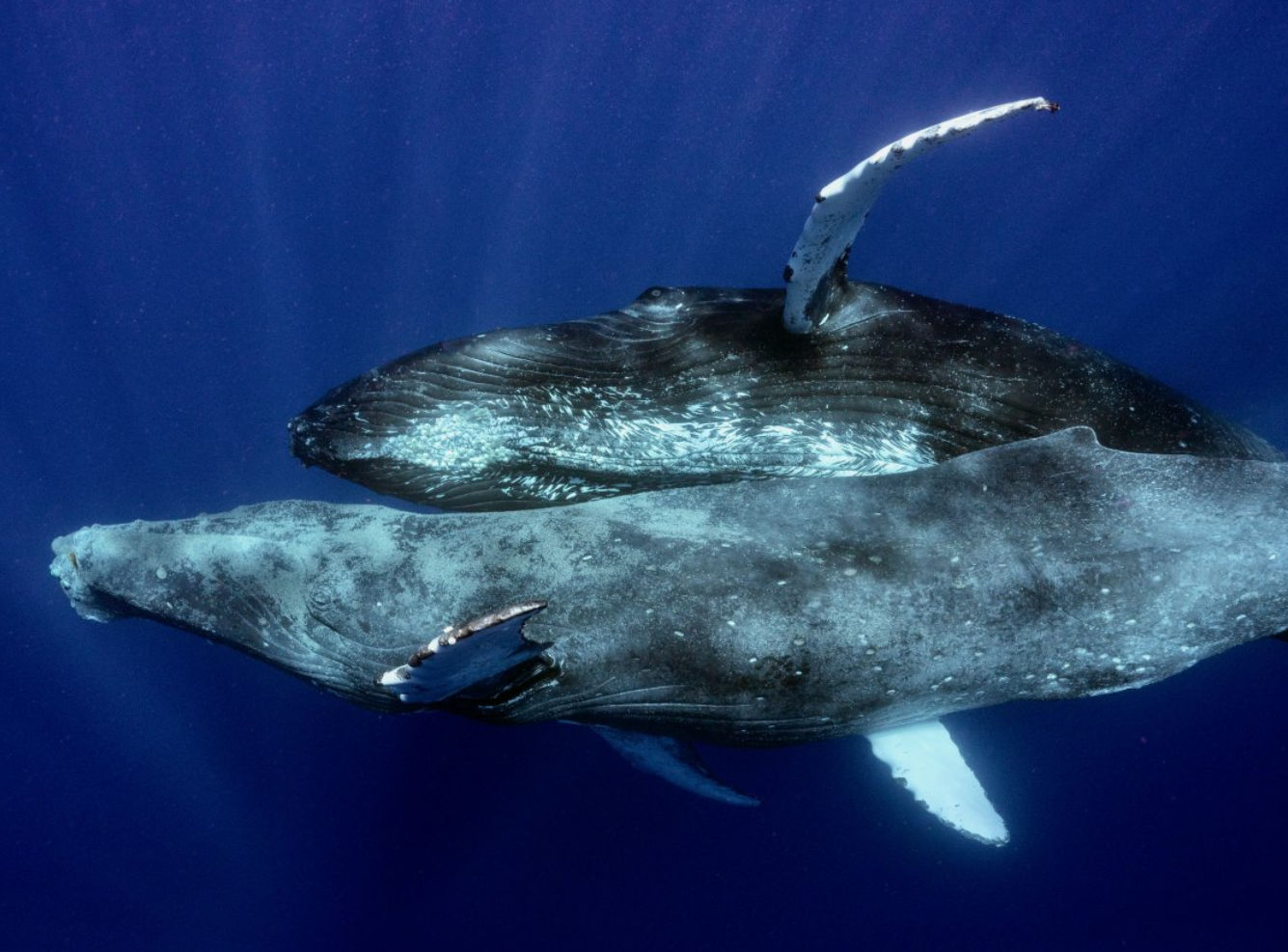 Sensationelle Aufnahmen haben die Unterwasser-Fotografen Lyle Krannichfeld und Brandi Romano vor der Küste von Hawaii gemacht: Zwei Buckelwale beim Sex.