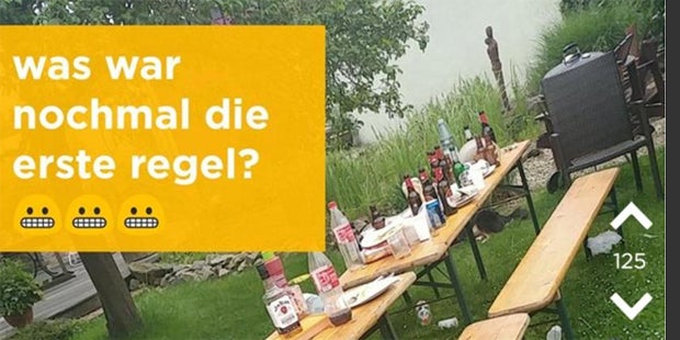 Auf den ersten Blick sieht dieses Foto ziemlich gewöhnlich aus. Zu sehen sind mehrere Bierbänke, die nach einer Party ziemlich verwüstet hinterlassen wurden. Interessant ist allerdings der Hintergrund. Hier ist eine Wand zu sehen – oder doch nicht?