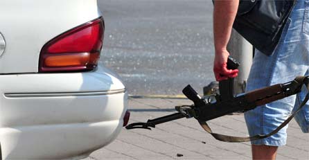 mit einem Revolver bedroht; dass dieser ungeladen war, wussten die Bedrohten