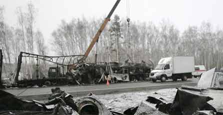 Der Unfall ereignete sich etwa 125 Kilometer östlich von Moskau. Ein Bus stieß mit einem LKW zusammen und find Feuer. Zahlreiche Verletzte mussten ins Krankenhaus gebracht werden.