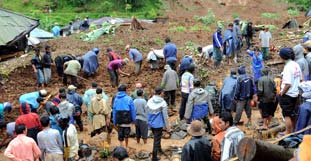 Nach zwölf Stunden Regen kam es zu zahlreichen Murenabgängen. Hilfsarbeiter graben die Toten aus den Erdmassen. Die Zahl der Vermissten ist hoch.
