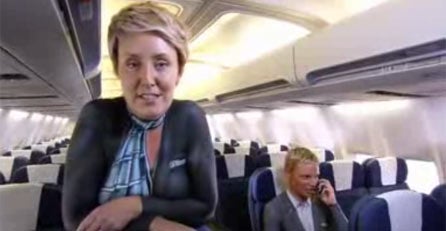 Darin zeigen vier Flugbegleiter - zwei Frauen und zwei Männer - sowie ein Pilot in aufgemalter Uniform, wie beispielsweise Sitzgurte und Schwimmwesten anzulegen sind. Voyeure gehen leer aus: Strategisch wichtige Körperstellen werden geschickt von Armlehnen oder anderen Gegenständen verdeckt. Die vorgetäuschte Uniform wurde jedem der Akteure in einer rund dreistündigen Sitzung aufgemalt.