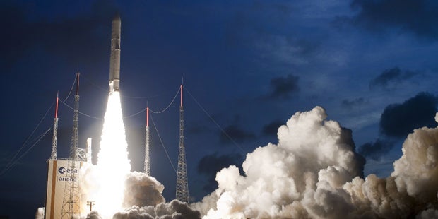 Eine Schlechtwetterfront hat am Donnerstag einen Start der europäischen Trägerrakete Ariane-5 in Kourou in Französisch-Guyana unmöglich gemacht. Das teilte die Betreibergesellschaft Arianespace in Evry bei Paris mit. Mit zwei Telekommunikationssatelliten an Bord sollte die Ariane um 21.38 Uhr MEZ abheben. Ein neuer Starttermin kann erst nach einer Wetterbesserung in Kourou anberaumt werden.