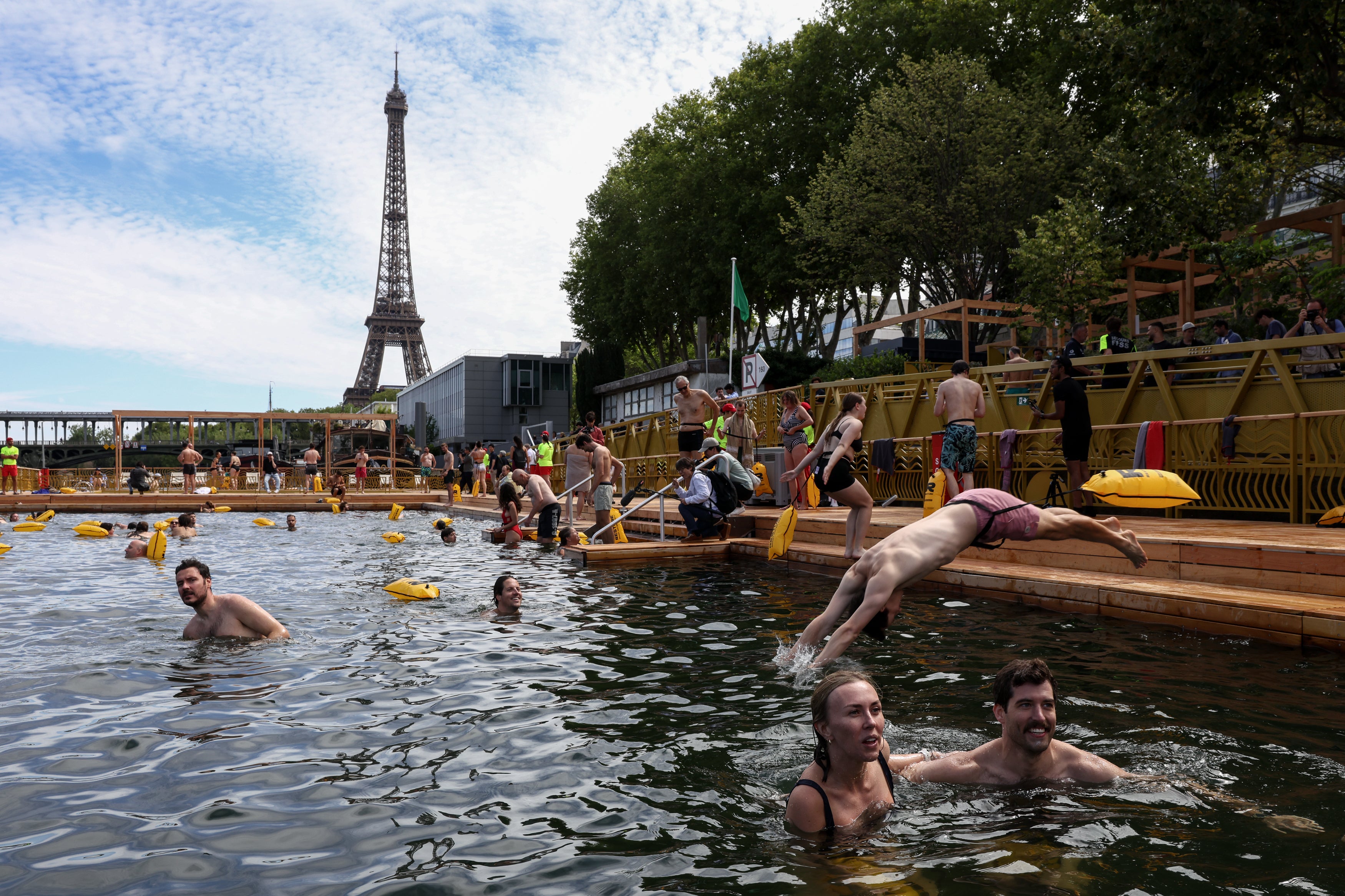 Die insgesamt drei abgegrenzten Flussbäder in der französischen Hauptstadt sind gratis für die Öffentlichkeit zugänglich, eine davon ganz in der Nähe des Eiffelturms. Grüne, gelbe oder rote Fahnen sollen darüber informieren, ob das Baden uneingeschränkt oder eingeschränkt empfohlen oder aber verboten ist.