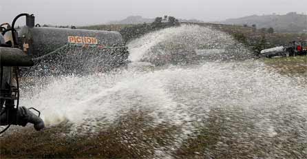 Aus Protest gegen die niedrigen Milchpreise haben hunderte französische Bauern ihre Milch auf den Feldern versprüht. Nahe des Mont Saint-Michel in der Normandie kamen am Freitag nach Polizeiangaben rund 250 Bauern zusammen, um mit ihren Traktoren mehr als eine Million Liter Milch aus Güllefässern auf den Feldern zu verteilen. In der Nähe von Pau in Südfrankreich brachten laut Gewerkschaftern etwa achtzig Landwirte 17 Tonnen Milch neben einem Werk des Lebensmittelriesen Danone aus.