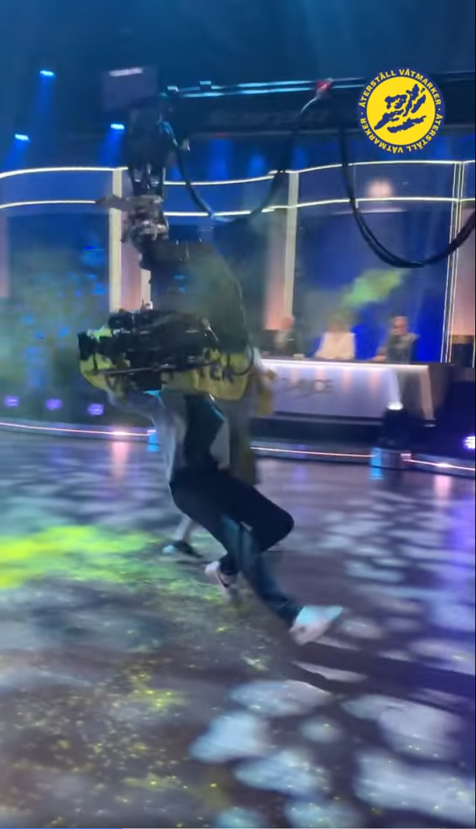 Mitglieder der Gruppe "Restore Wetlands" stürmten die Bühne der schwedischen "Let's Dance'-Ausgabe. Mit Pulverfarbe und Bannern wurde das Finale der Sendung gestört. Doch eine Szene überschattete den Protest der Aktivisten: Ein Klima-Chaot wurde von einem Kamerakran niedergemäht. Das Gewicht der Ausrüstung holte den jungen Aktivisten rammbockartig von den Beinen. Ob der Kameramann den Störenfried mit Absicht anvisierte, ist unklar.
