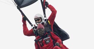 einen Fallschirmsprung gewagt habe. Die Idee für den Sprung hatte ein
