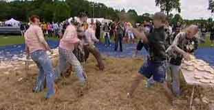 Heuer nahmen 31 gemischte Teams an den "World Custard Pie Championships 2008" teil. In den Anfangsjahren durften Frauen nicht teilnehmen. Inzwischen werden sie sogar als Vorteil angesehen.