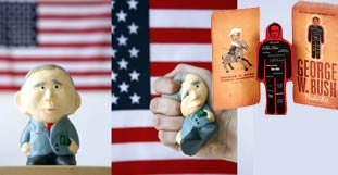 Bush wird zum Kassenhit: Zum Ende seiner Amtszeit finden Bush-Voodoo-Puppen und Lollis reißenden Absatz. Ein Gummi-Bush kann zerdrückt werden.