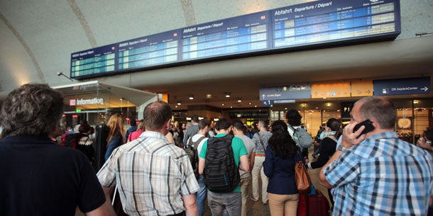 Auf Bahnhöfen und Flughäfen strandeten Passagiere.