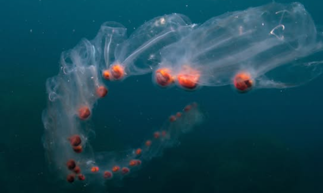Das Institut für Ozeanografie und Fischerei in Split bestätigt das Phänomen: Es handele sich um ein „explosionsartiges Vorkommen“ von Salpen, einer Klasse gallertartiger, röhrenförmiger Tiere. Sie leben vom Plankton und bilden oft meterlange Ketten, die spektakuläre Formationen im Wasser entstehen lassen.