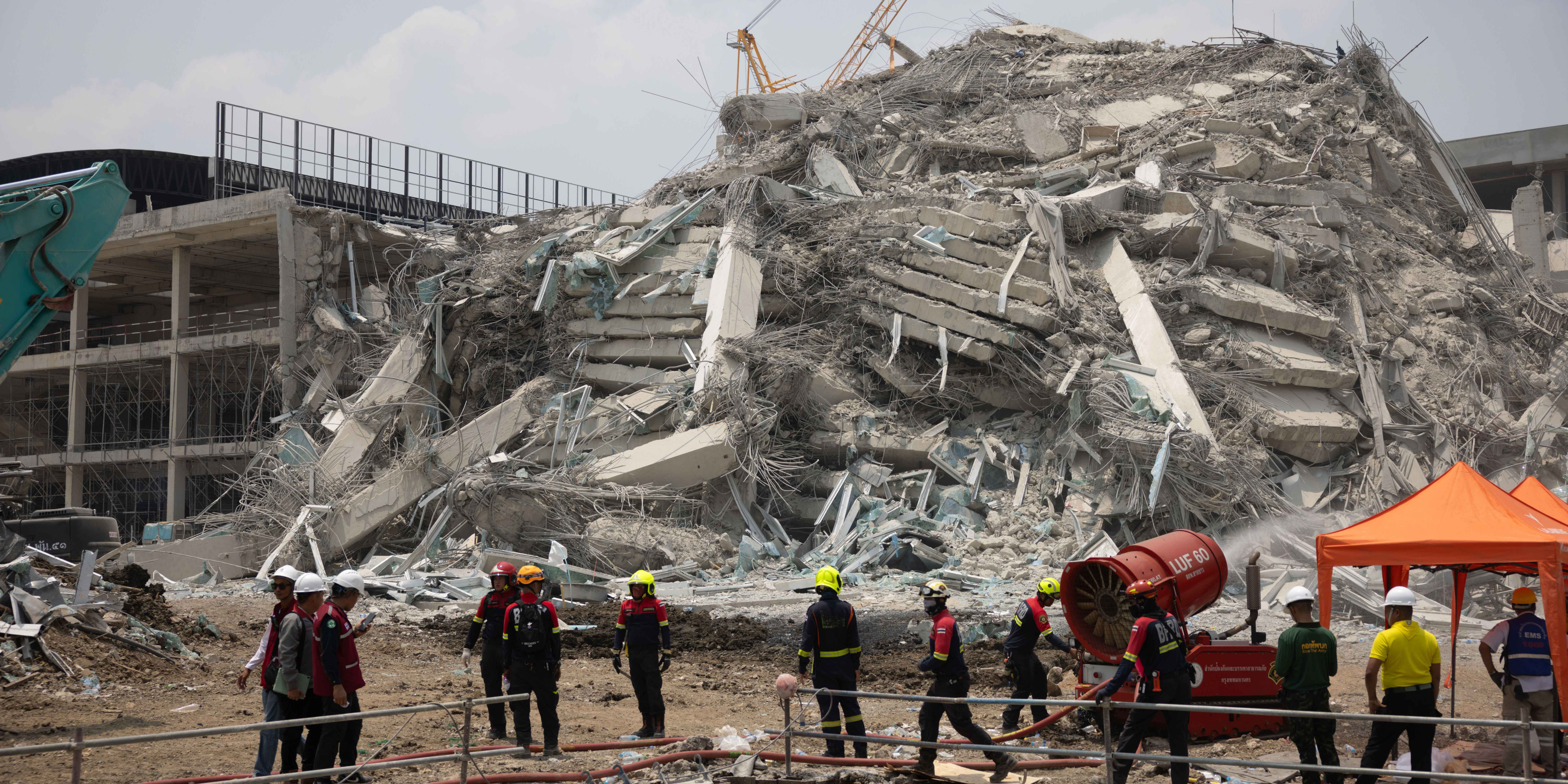 In Bangkok war am Freitag ein im Bau befindliches Hochhaus in sich zusammengestürzt. Die Suche nach Vermissten in den Trümmern läuft weiter, wie auf Fotos zu sehen war. Unterdessen kehrte wieder etwas Alltag in die thailändische Hauptstadt zurück. Im öffentlichen Nahverkehr nahmen einige U-Bahnlinien wieder den Betrieb auf. Andere wurden noch weiter auf Schäden überprüft.