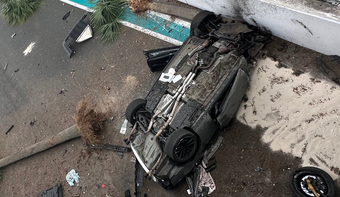 Der Unfall ereignete sich am Florida Turnpike in der Nähe des Hard Rock Stadiums in Miami Gardens. Wie die Florida Highway Patrol mitteilt, verlor der Fahrer eines grauen Dodge Coupés auf einer Ausfahrt die Kontrolle über sein Fahrzeug und prallte gegen eine Betonleitwand.