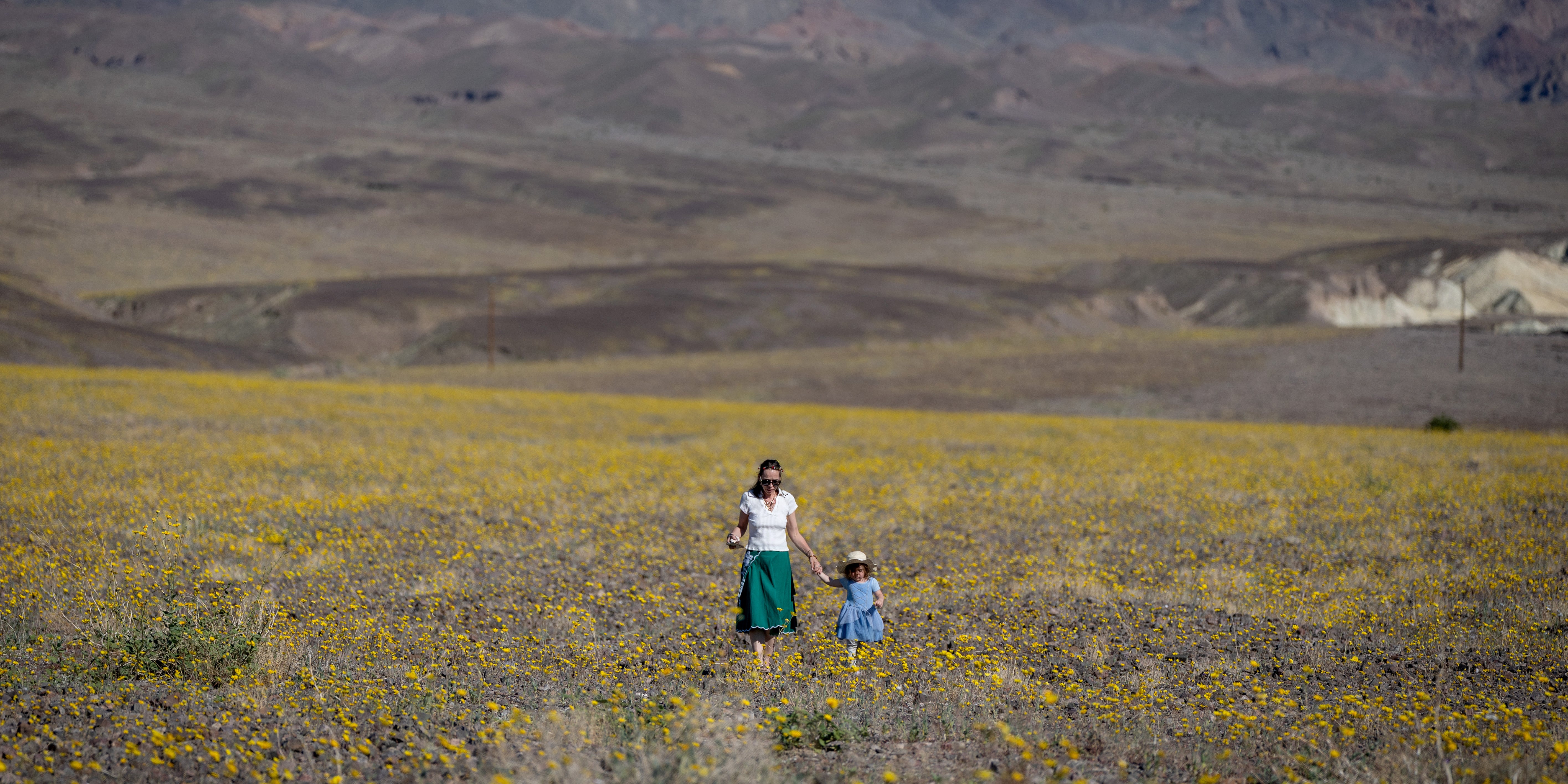 Zum ersten Mal seit 2016 vermeldet der Death-Valley-Nationalpark die beste Superblüte. Dabei verwandelt sich die Wüste in ein buntes Blumenmeer. Im Death Valley blühen Pflanzen wie die Wüstensonnenblume (Geraea canescens), Braunaugenprimel (Chylismia claviformis) oder Sandwunderblume (Abronia) und färben das "Tal des Todes" in Gelb, Weiß oder Rosa.