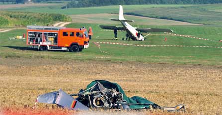 Offenbar kamen sich die Maschinen zu nahe und kollidierten. Der kleine Hubschrauber vom Typ R44 stürzte sofort ab und brannte aus. Die andere Maschine vom Typ Cessna 172 war nicht mehr manövrierfähig und kam im Gleitflug zu Boden. Der Vorfall ereignete sich gegen 15.20 Uhr auf dem Flugplatz Erpfental.
