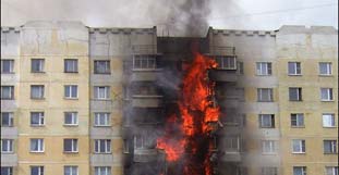 aus, in der Mitte des 20-stöckigen Hochhauses seien mehrere Etagen zerstört