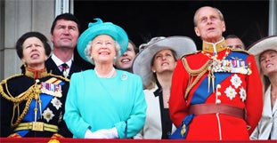 Königsfamilie das Spektakel bewunderte. Zu den Zuschauern der Parade zählten