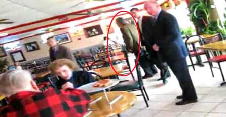 "Sind Sie glücklich über die Millionen Toten die sie verschuldet haben? Die Menschen werden bald die Wahrheit erkennen, Mr. Bush, Sie Stück Sch****!" brüllt der aufgebrachte Gast. Die Bodyguards des Ex-Präsidenten befördern die unliebsame Person mit den Worten "Das ist nicht notwendig" aus dem Lokal hinaus.