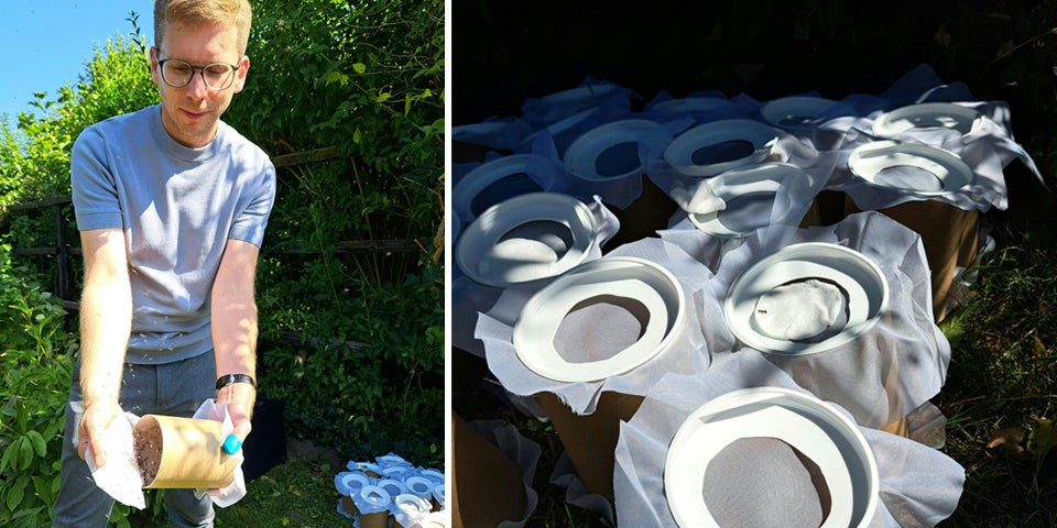Behälter mit eingefärbten männlichen Tigermücken, im Rahmen eines Projekts der Stadt Graz und Seibersdorf Laboratories zur Populationsminimierung der Asiatischen Tigermücke.