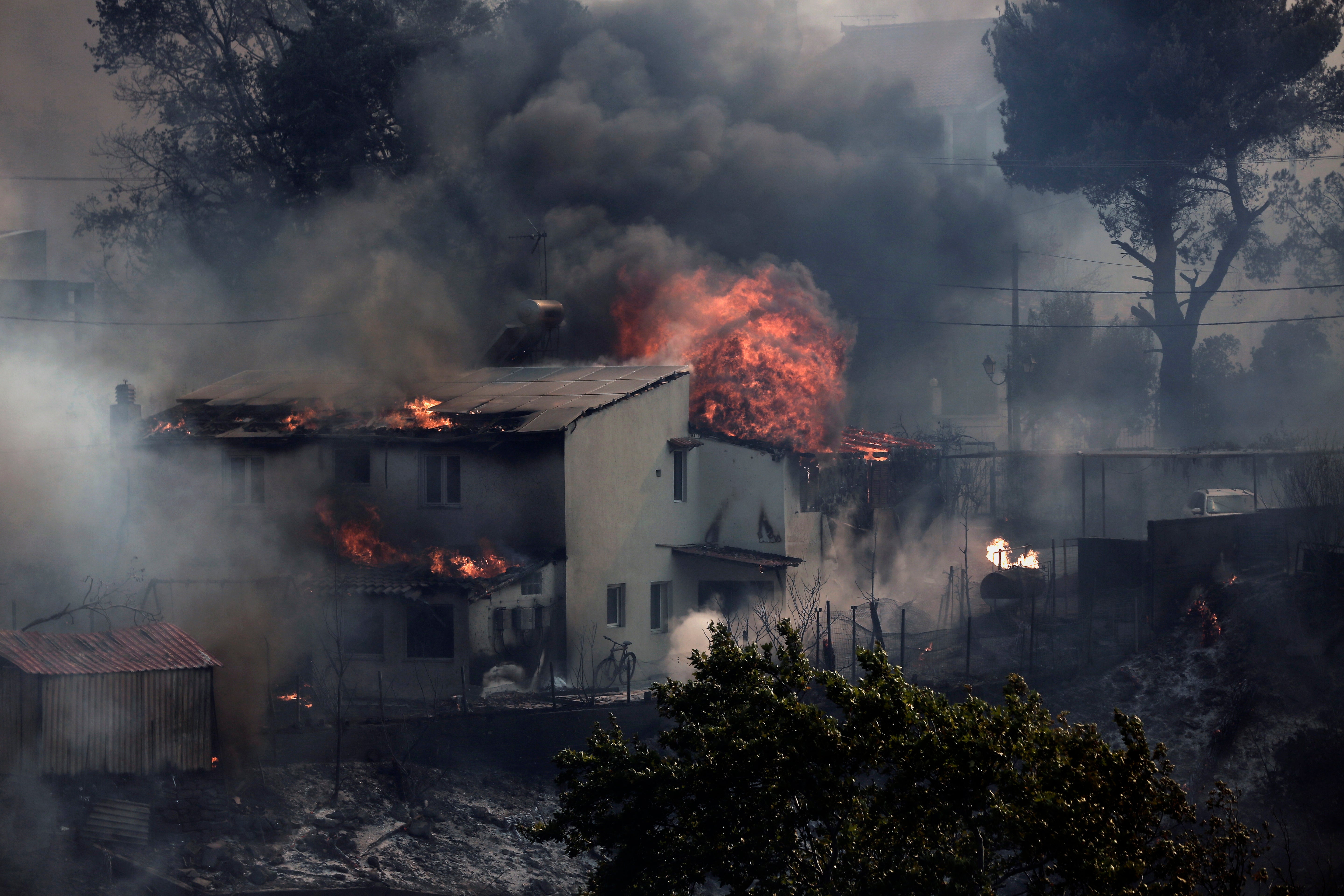 Vor allem ein Großbrand rund 25 Kilometer nördlich des Athener Stadtzentrums macht den Rettungskräften zu schaffen. Dort fielen bereits mehrere Häuser den Flammen zum Opfer, Ortschaften wurden evakuiert, 27 Menschen von der Polizei in Sicherheit gebracht. Manche Anrainer weigerten sich zunächst, ihre Häuser zu verlassen, wie Medien berichteten.