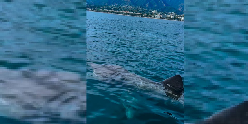 Es ist angsteinflößend. Zu sehen: Ein Jetski, der davon rast, und ein zwei Meter langer Riesen-Hai. Und das direkt vor der weltbekannten Küste in Marbella.
