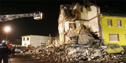 Nach Augenzeugenberichten hatte es am Samstagabend einen lauten Knall gegeben. Als die Nachbarn daraufhin aus dem Fenster sahen, war die Doppelhaushälfte schon eingestürzt. Die Straße davor lag voller Trümmer.