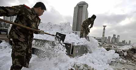 Vor der Provinz Shandong sind bereits 40 Prozent des Bohai Meeres zugefroren, wie das Parteiorgan "Renmin Ribao" (Volkszeitung) berichtete. Die Fischer kämpften meist vergebens gegen die Eisschollen an.