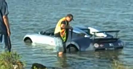 Augenzeugen staunten nicht schlecht, als sie beobachteten wie ein Bugatti Veyron, ein 1,2 Millionen Euro teures Schmuckstück, vor ihnen in einen See raste. Der Lenker des Wagens, ein US-Amerikaner, behauptet, dass er einem Vogel ausgewichen sei und deswegen mit dem Wagen, der einen Top-Speed von 407 km/h hat, in den See gerast ist.