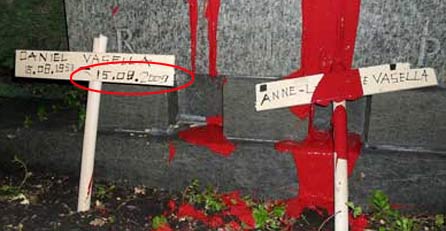 Jetzt tauchte ein schockierendes Foto auf der Website der Organisation Bite Back auf. Es zeigt das geschändete Grab. Darauf lehnen zwei Kreuze mit dem Namen von Daniel Vasella und dessen Frau darauf. Besonders grausig: Auf Vasellas Kreuz steht bereits ein Todes-Datum, der 15. August 2009, sein 56. Geburtstag.