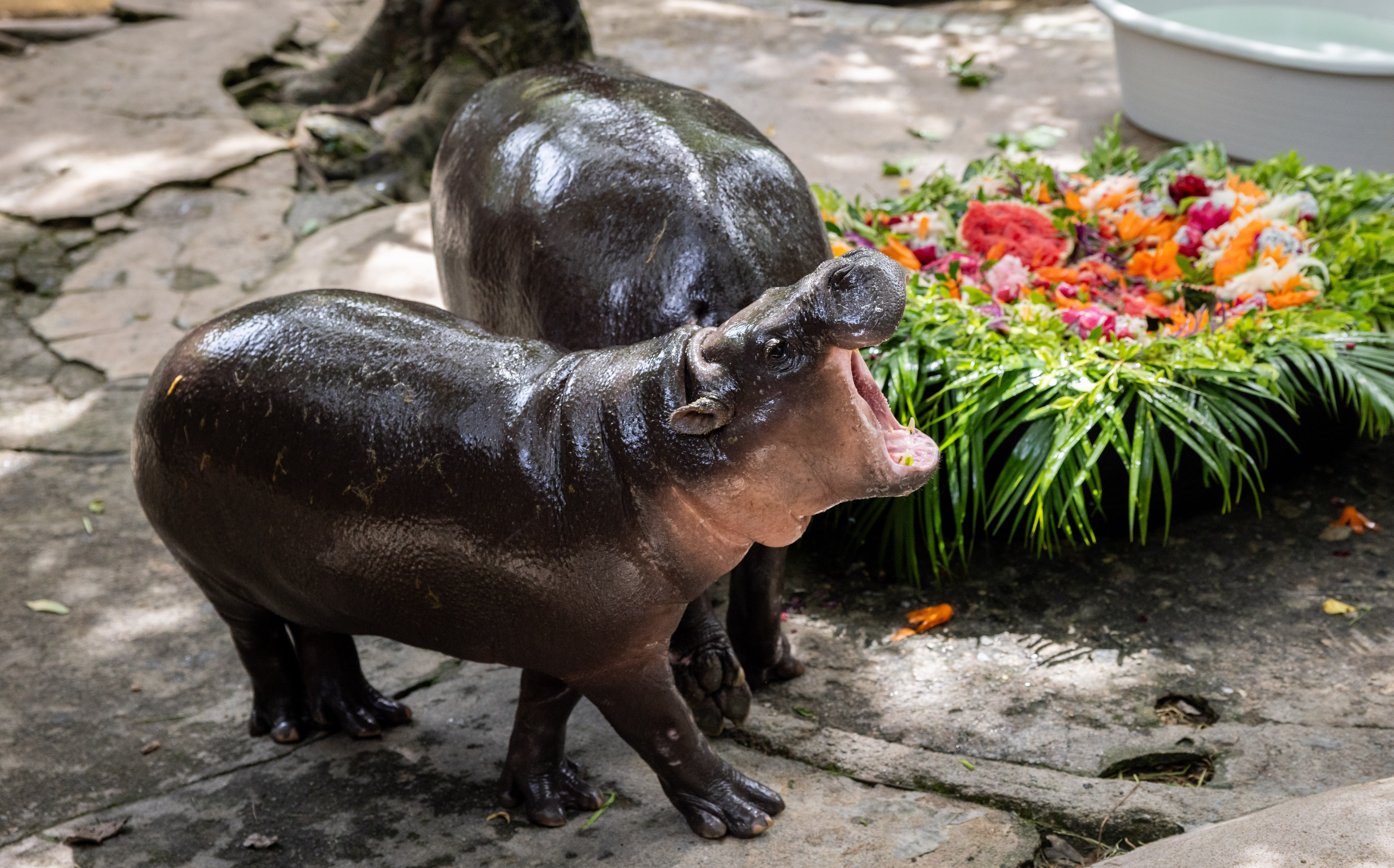 Für die wegen der Corona-Pandemie stark angeschlagene Tourismusbranche war die Geburt des Zwerghippos am 10. Juli 2024 ein Glücksfall. Die Begeisterung für das süße Flusspferdchen lässt seither in Thailand die Kassen klingen - vor allem dank einer exzessiven Vermarktung.