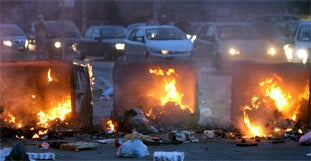 Neapel, protestiert. Die Demonstranten errichteten Straßenblockaden gegen