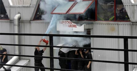 Bei der Zwangsräumung einer Kaufhalle in Warschau ist es am Dienstag zu Krawallen zwischen den Ordnungskräften und Händlern gekommen. Vom Gerichtsvollzieher bestellte Ordnungskräfte stürmten am Vormittag mehrmals - ohne Erfolg - die Räume, in denen sich mehrere hundert Geschäftsbesitzer verbarrikadierten. Die Händler hätten Feuerlöscher eingesetzt, die Ordnungskräfte Tränengas, berichtete der Fernsehsender TVN24.
