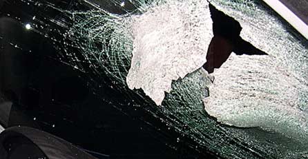 Motorraumdeckel geflogen, durchbrach dann die Windschutzscheibe und traf den