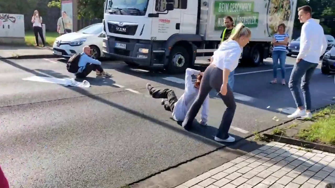 - Wütende Frau zerrt Klima-Kleberin an den Haaren von der Straße