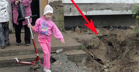 Im Hof des Mietshauses ist jetzt ein Krater zu sehen.