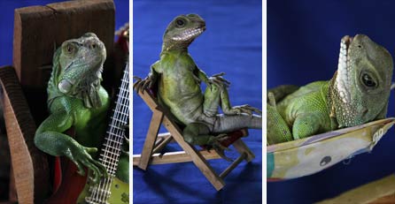 Das Tier hat bereits Einiges zu bieten: In der Hängematte zu liegen oder auf einem Sessel zu sitzen bereiten keinerlei Schwierigkeiten. Auch eine Gitarre zu spielen gehört inzwischen zum Repertoire.