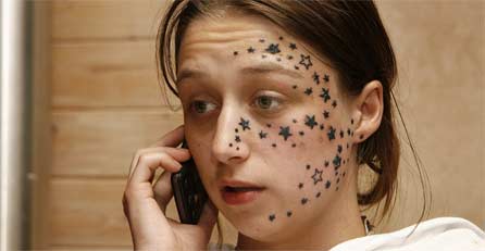 Der Tätowierer ließ das Mädchen alle paar Minuten den Fortschritt kontrollieren und sie entschied sich jedesmal noch ein paar Sterne hinzuzufügen. Als sie das fertige Werk dann betrachtete, sei sie äußerst zufrieden gewesen, nur die Sterne auf der Nase bereute sie ein wenig.