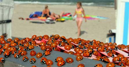 Für Urlauber an der Ostsee gibt es momentan fast kein Entkommen von den Krabblern. Die Käfer finden sich nicht nur am Strand, sondern kommen auch in die Stadtzentren. Ein Tipp: helle kleidung vermeiden, denn diese zieht die Marienkäfer geradzu magisch an.
