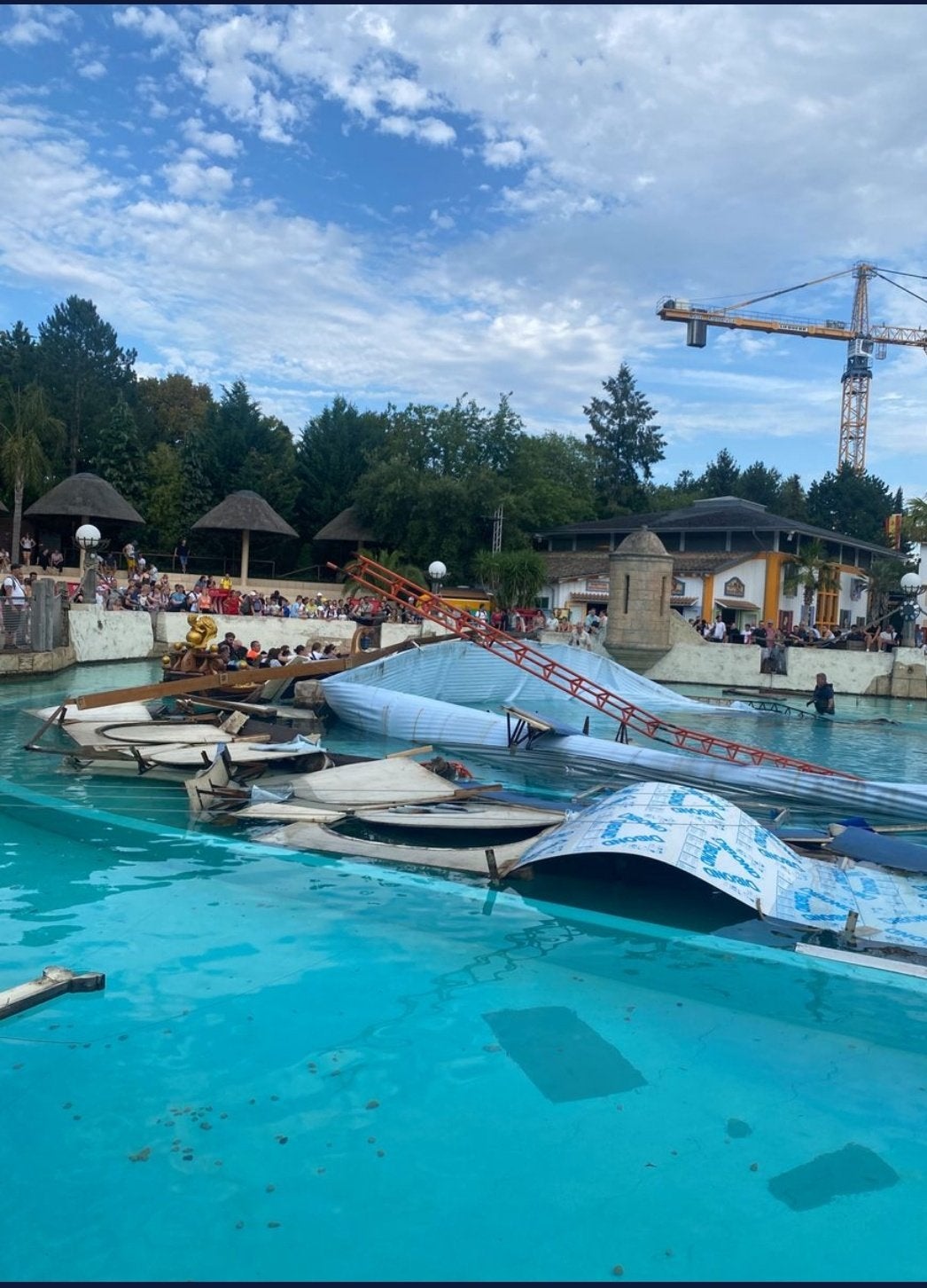 Laut einem Sprecher des Parks habe sich ein mobiles Schwimmbecken der "High-Diving-Show "Retorno dos Piratas"" während einer Aufführung durch einen Riss geöffnet. Das Wasser sei in den See der Attraktion "Atlantica SuperSplash" geflossen. Ein Besucher habe eine leichte Schürfwunde erlitten, weitere Besucher des Europa-Parks seien nicht betroffen gewesen. ""Atlantica SuperSplash" wird in Kürze wieder in Betrieb gehen", erklärte der Sprecher.