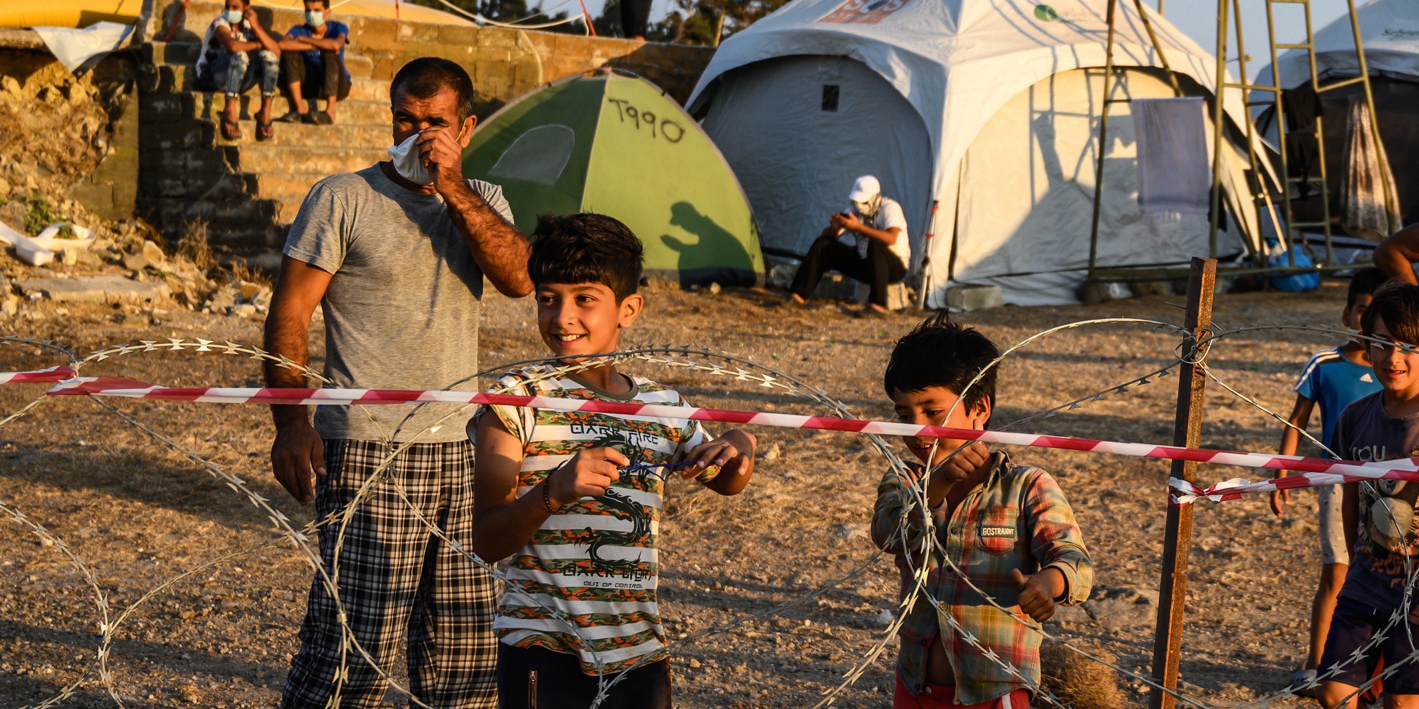 Lesbos. 13.000 Flüchtlinge landeten nach dem Brand des Camps Moria auf der griechischen Insel Lesbos auf der Straße. Der Afghane Jabar zog mit seiner Frau und den zwei Kindern vor zwei Tagen in das Ersatzlager.