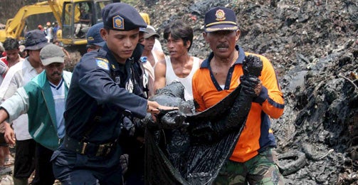 Der Vorfall ereignete sich in Bekasi östlich der Hauptstadt Jakarta. Auf dem großen Müllberg suchen jeden Tag hunderte Menschen nach Kunststoff oder anderen brauchbaren Materialien, um sie an Fabriken zu verkaufen.