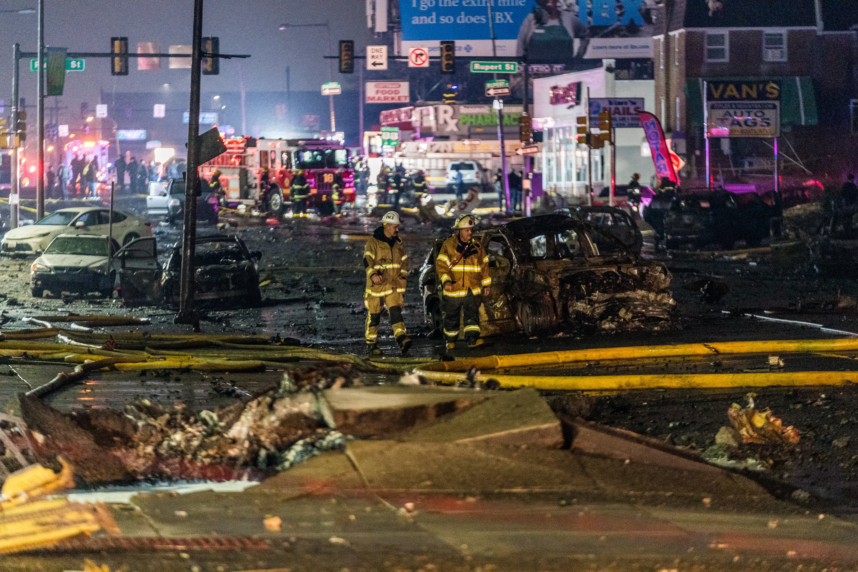 Auf Bildern, die mehrere US-Fernsehsender verbreiteten, waren dramatische Szenen zu sehen: eine gewaltige Explosion, ein Feuerball und große Rauchschwaden - und das mitten in einem Gebiet im Nordosten Philadelphias mit einer großen Ansammlung von Läden und viel befahrenen Straßen im Feierabendverkehr. Das Gebiet wurde großräumig abgesperrt, und Einwohner wurden aufgerufen, die Gegend zu meiden.