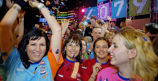 Neuer Weltrekord: Beim "Domino Day 2006" fielen insgesamt 4.079.381 Steine. Drei Österreicherinnen waren dabei.