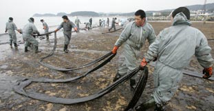 Die Ölkatastrophe an der südkoreanischen Westküste nimmt immer größere Ausmaße an. Mittlerweile sei das Ufer auf einer Strecke von mehr als 40 Kilometern direkt von der Verschmutzung durch das Öl betroffen, teilte am Montag ein Sprecher des Ministeriums für Maritime Angelegenheiten und Fischerei mit. Das Öl war am Freitag aus dem leckgeschlagenen Großtanker "Hebei Spirit" ausgelaufen.